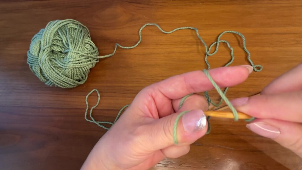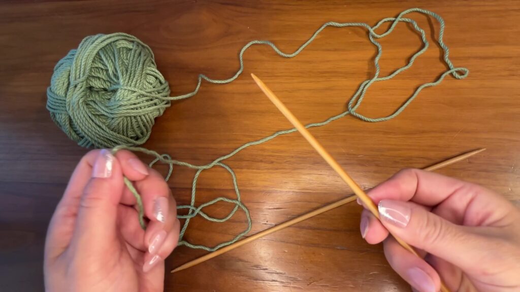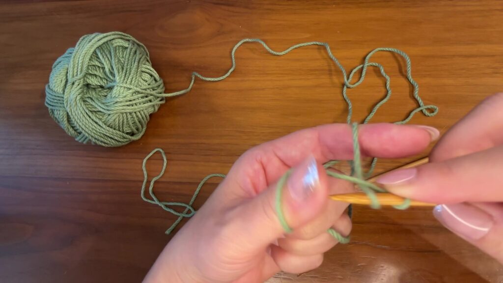 糸は編みたい幅の3倍くらいの長さのところを持ちます