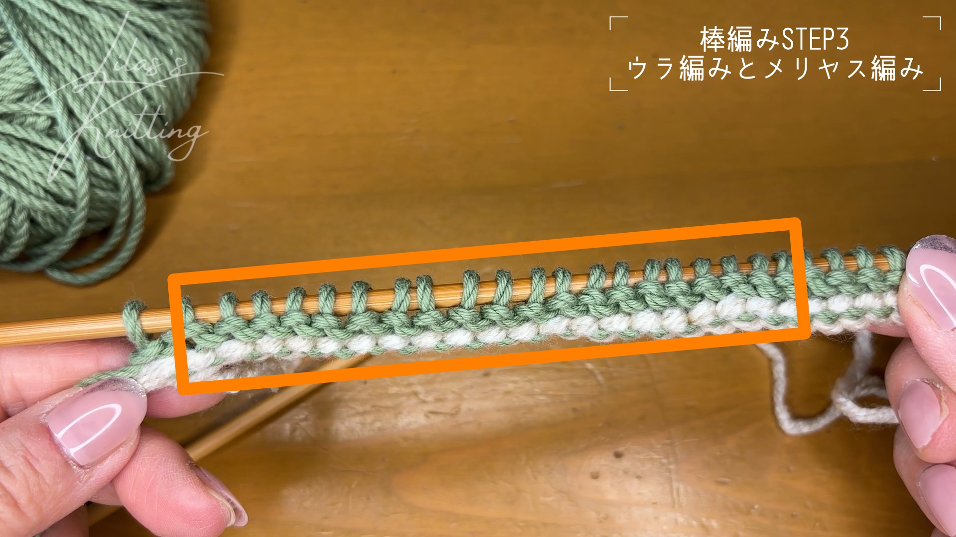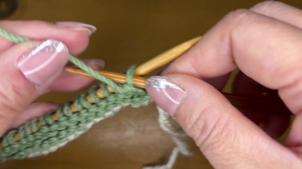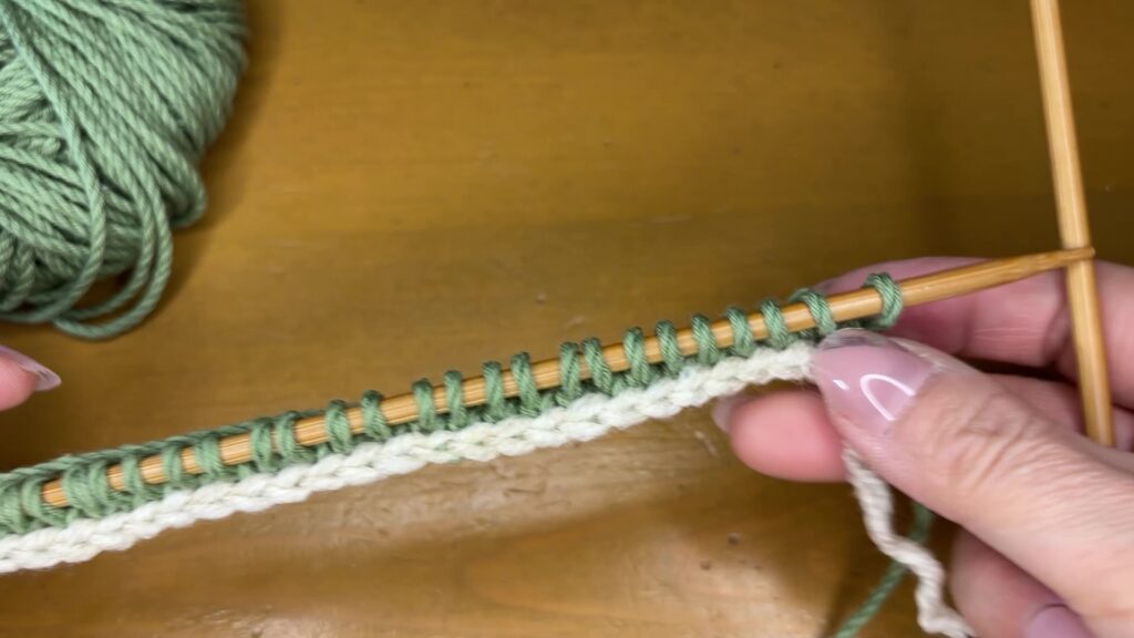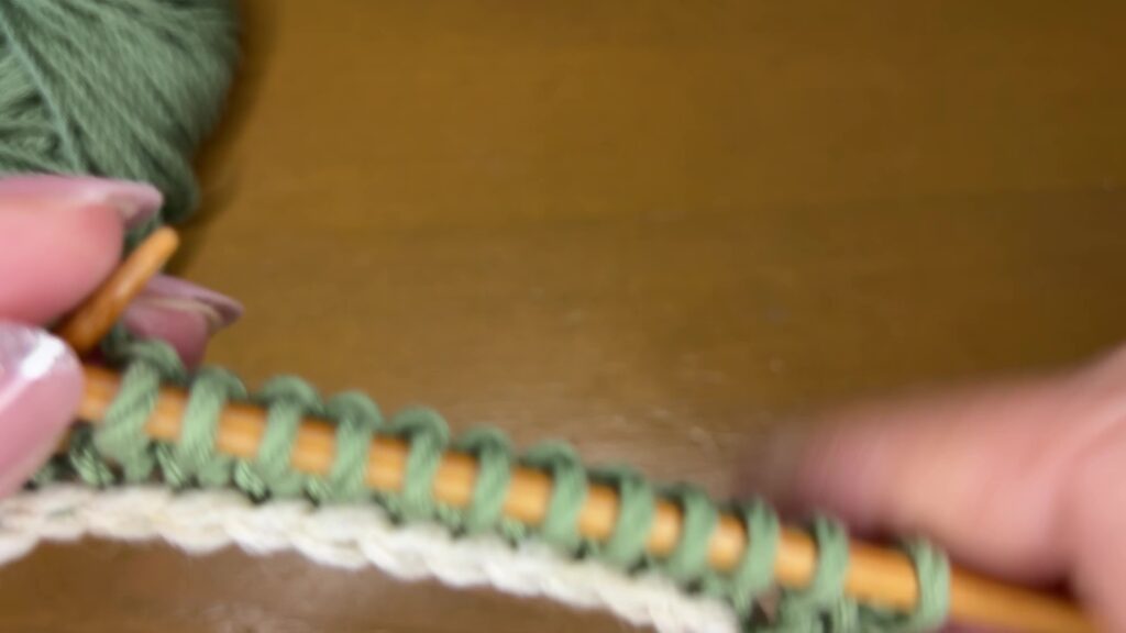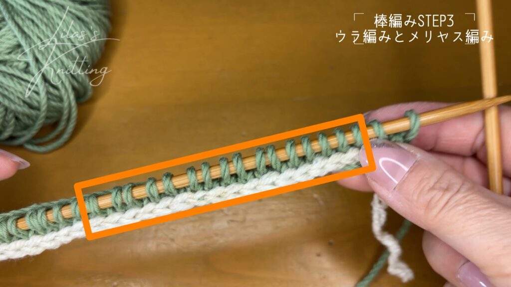 メリヤス編みは奇数段は表編み、偶数段はウラ編みです