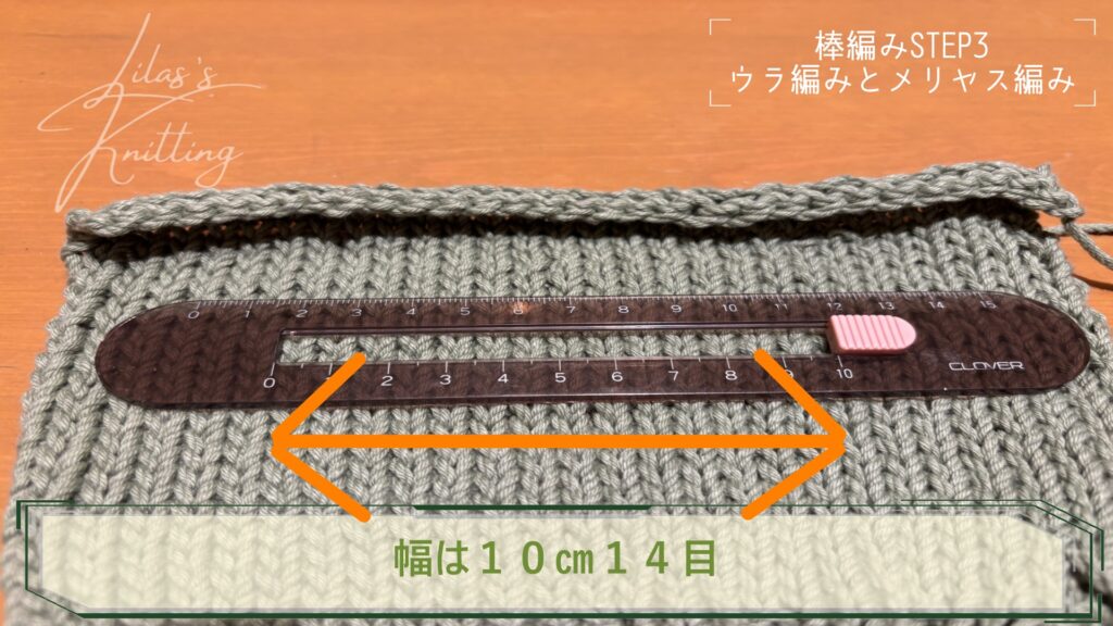ゲージを編む場合は10㎝以上編みます