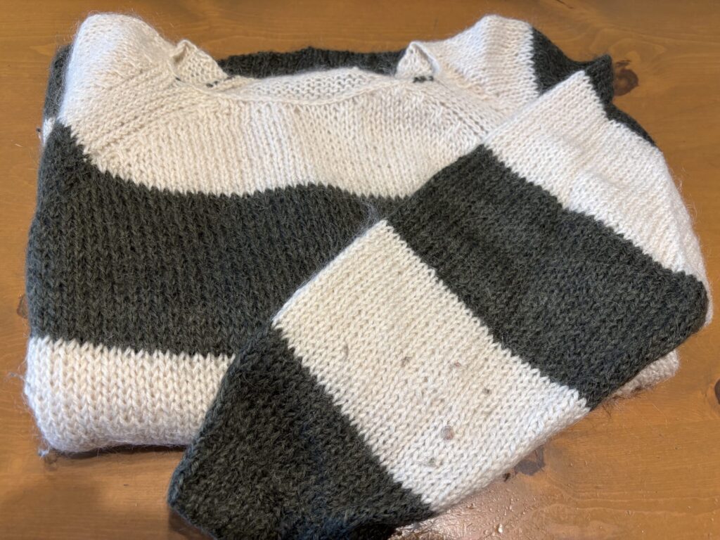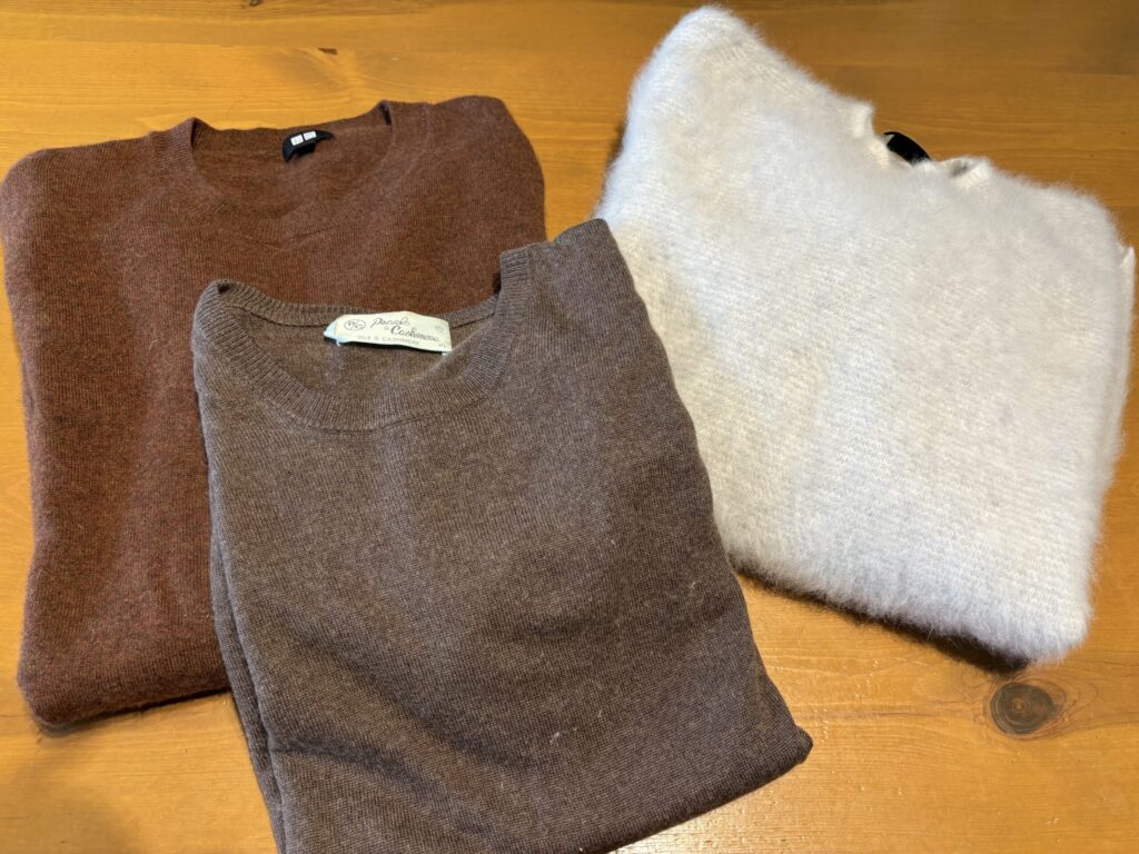 多くのセーターがメリヤス編みです